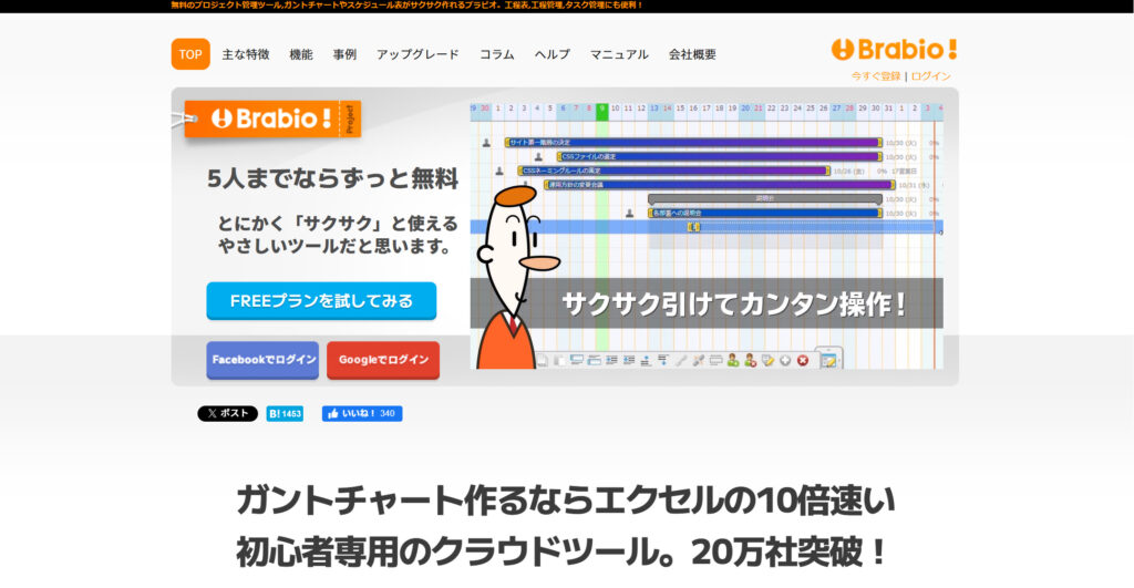 Brabio!は国産のクラウド型プロジェクト管理ツールとして、ガントチャートを中心にタスクの進捗状況を可視化できます。その中でも「進捗レポート」機能は、プロジェクト全体や個別タスクの進捗を数値やグラフで把握できる重要な機能です。